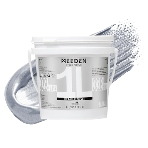 MEEDEN Metallic Silver Akrylfärg: 1L / 33.8oz Blank Finish Akrylfärg för vuxna Konstnärsmålning på hantverk Metallprojekt Heminredning Möbler Påskägg