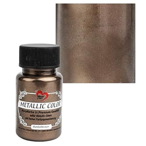 Ideen mit Herz Metallic Color | Metallisk färg | högkvalitativ akrylfärg i premiumkvalitet med ädel metallisk glans och hög färgpigmentering | 50 ml (mörkbrun)