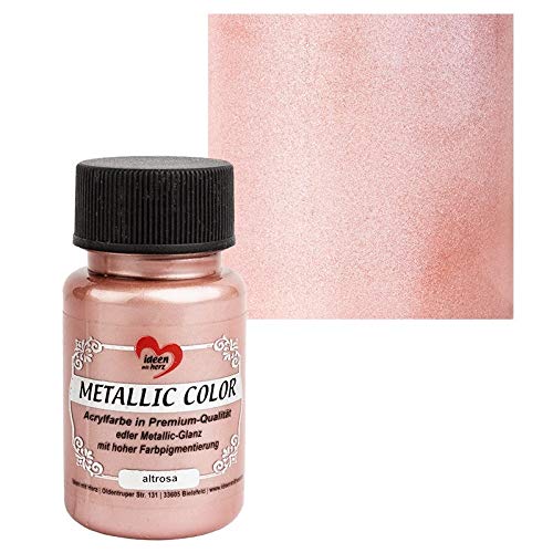Ideen mit Herz Metallic Color | Högkvalitativ akrylfärg i premiumkvalitet med ädel metallisk glans och hög färgpigmentering | 50 ml (gammalrosa)
