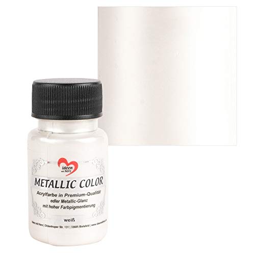 Ideen mit Herz Metallic Color | Högkvalitativ akrylfärg i premiumkvalitet med ädel metallisk glans och hög färgpigmentering | 50 ml (vit)