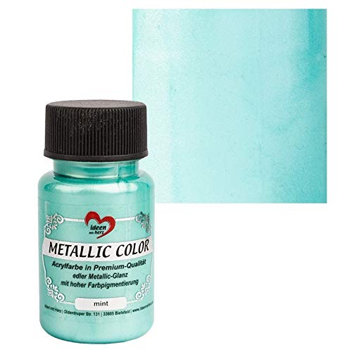 Ideen mit Herz Metallic Color | Metallisk färg | högkvalitativ akrylfärg i premiumkvalitet med ädel metallisk glans och hög färgpigmentering | 50 ml (mint)