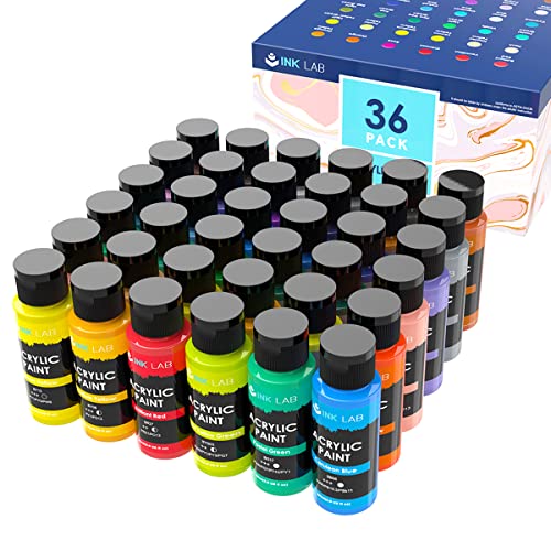 Akrylfärg Set 36 Klara Färger Set med Akrylfärger för Konstnär Barn Vuxna Högkvalitativ Akrylfärgsset för Duk Hantverk Tyg Trä Keramik