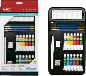 Artina Michelangelo 122 Delar XXL Konstset – Omfattande Konststudio inkluderande Komplett Set Akrylfärger – Konstnärsstaffli Pennor Penslar Färger & Tillbehör