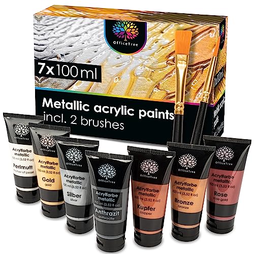 OfficeTree 7 x 100 ml akrylfärger metalliskt set - vattenbaserade akrylfärger - för akrylmålning - akrylfärg perfekt för blandning