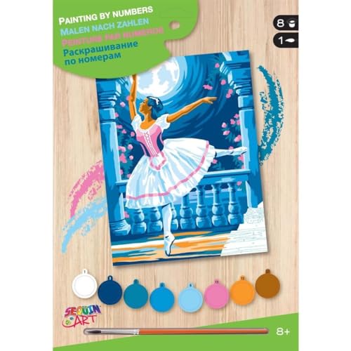 SEQUIN ART 8222006 måla med siffror junior motiv svansar, komplett set med tryckt målningsmall i A4-format, nybörjare set med 8 akrylfärger, borstar och instruktioner, målningssats för barn från 8 år