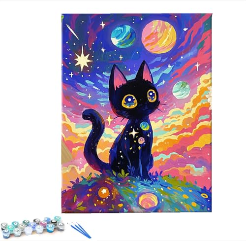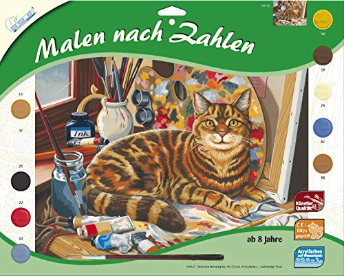 MAMMUT 109105 – måla efter siffror djurmotiv, katt, komplett set med tryckt målarball i A3-format, 10 akrylfärger och penslar, stort målningsset för barn från 8 år