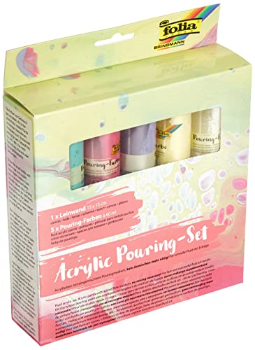 folia 351129 – Akrylic Pouring Set II pastell, med 5 Pouring-färger á 60 ml och 1 duk ca. 15 x 15 cm, akrylfärger med blandat pouringmedium