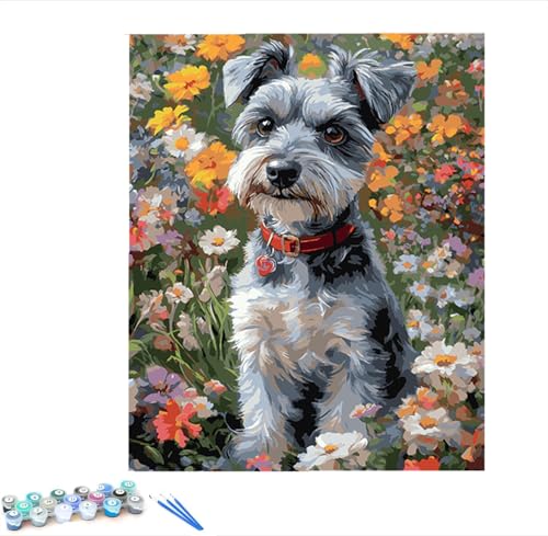 Towonshy Måla efter siffror för vuxna 40 x 50 cm – gör-det-själv akrylfärger set med duk och penslar – avkopplande konstprojekt för hemmet – perfekt som present (söt hund)