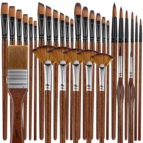 Bougimal penselset akrylfärger, set med 32 akrylpenslar, konstnärsborste med rund, fyrkantig, platt, fläktpenselset för konstnärer och nybörjare för målning, tefärg