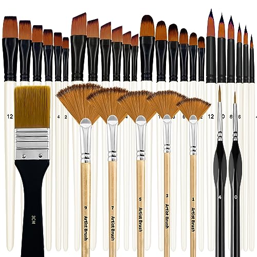 Molain 30 stycken konstnärsborstset, rund, platt, litet penselset, nylonpenselset, akrylfärger, små penslar, set för akryl, vattenfärger och oljemålningar, konstnärer, malliehavare, 2 storlekar