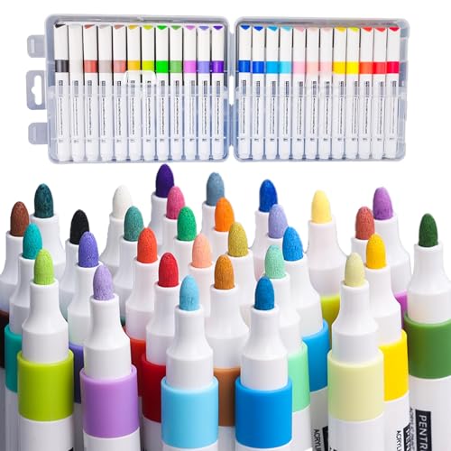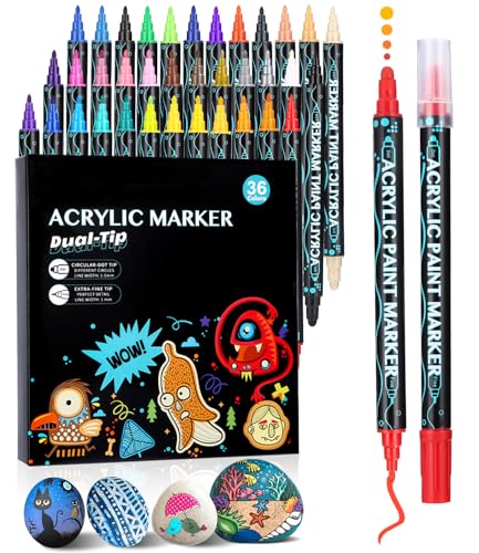 Akrylpennor för stenar vattentäta, akrylfärger pennor, 36 pennor dubbla spetsar akrylfärger pennor stenar måla set, akrylfärger för stenar trä, glas, duk, sten, tyg, gör-det-själv fotoalbum, keramik