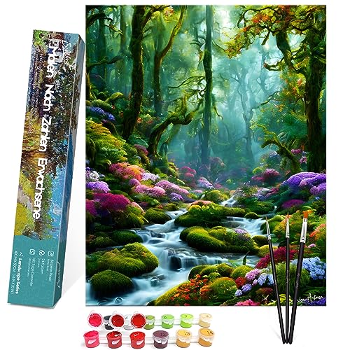 Bougimal Måla efter nummer vuxen med penslar och akrylfärger kit för vuxna barn seniorer nybörjare, grön skog, för hemdekoration, 40 x 50 cm