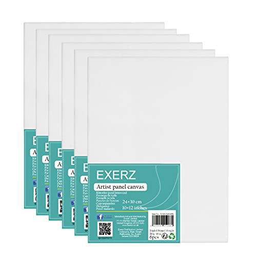 Exerz 24x30cm målarkartong, set om 6 – canvaspaneler 0,3 cm tjock, 280 GSM 100% bomull/vit – konstduk för akrylfärger, oljefärger – trippel grundfärgad/utan syra/mellankorn