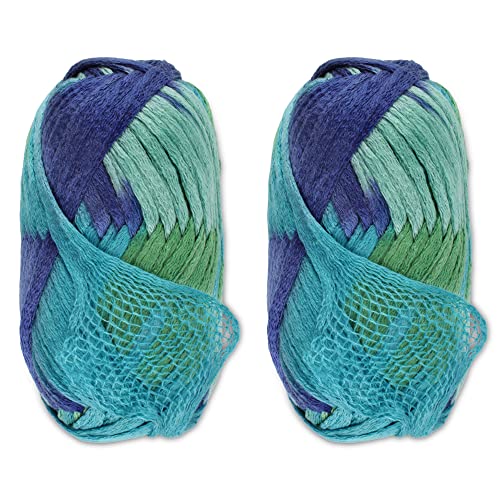 BambooMN Varumärke – 2 skeins – fisknät, volang fin scarf garn – 200 g (60 m), 100% akrylgarn – havsblå