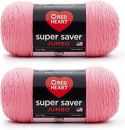 Red Heart Super Saver Jumbo Perfect Pink-garn – 2-pack à 396 g (14 oz) per nystan, akrylgarn i viktklass 4 (medium/worsted). Varje nystan innehåller 680 meter, perfekt för stickning och virkning.