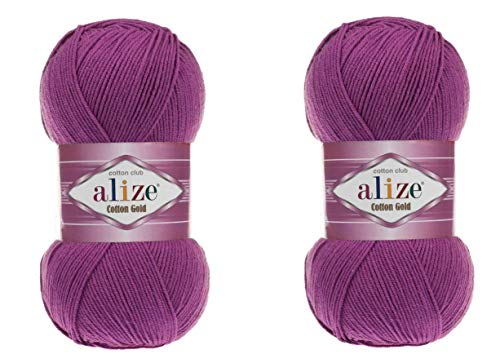 Alize bomullsguldgarn 55% bomull 45% akrylgarn virkad handstickning konst förpackning med 2 nyanser 200 g 722 yds (122-PLUM)