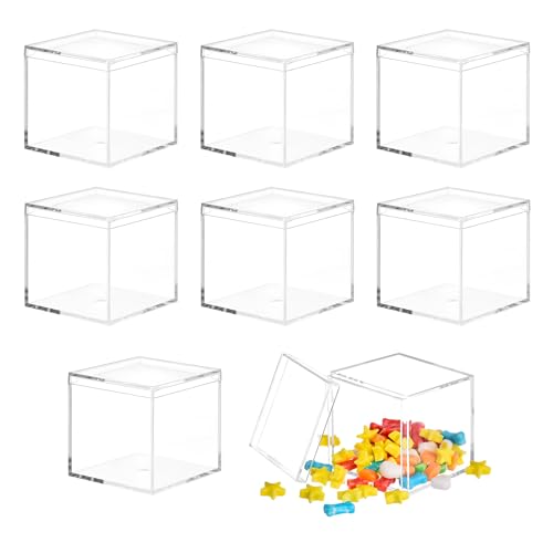 KQDRAVINE 8 stycken liten förvaringslåda med lock, akrylkub presentbox transparent set, akryllåda med lock, transparent liten akryllåda för smycken, figurer, godis
