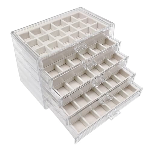 Smyckeskrin, smyckesorganisatör, örhängesförvaring, 5 nivåer 90 små fack stapelbar sammet + akryllåda, organisatör, lådor och organiserare för ringar, örhängesförvaring, halsbandsförvaring (beige)