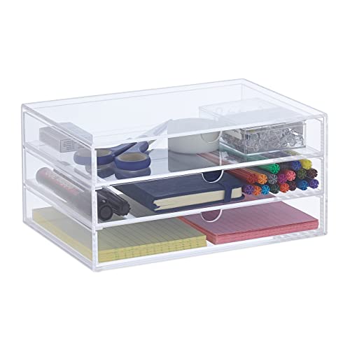 Relaxdays Lådbox akryl, HBT: 11,5 x 23,5 x 16,5 cm, organizer kosmetika, kontor, akryllåda med 3 fack, transparent