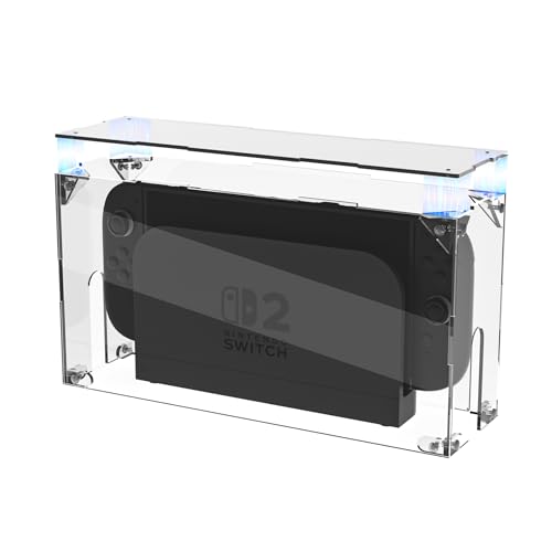 PlayVital Dammskydds Skal för Switch 2 Konsol,Skyddsfodral för Switch 2 Laddningsdocka,Transparent Akryllåda Vattentätt Reptåligt Displayskydd-Klar