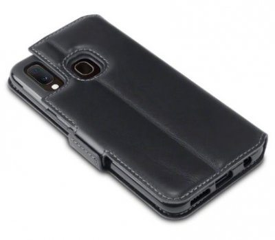 Mobilväska Samsung Galaxy A20e Äkta Läder Svart Slim