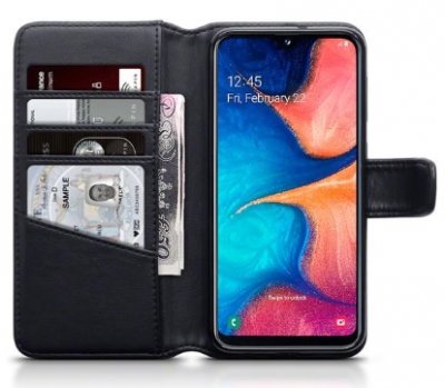 Samsung Galaxy A20E - Läderfodral / plånboksfodral med ytterficka - Svart