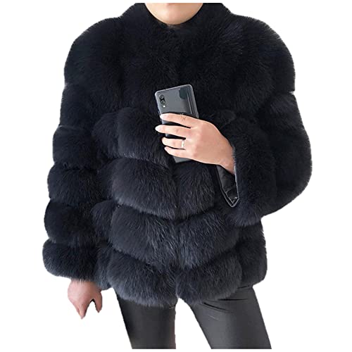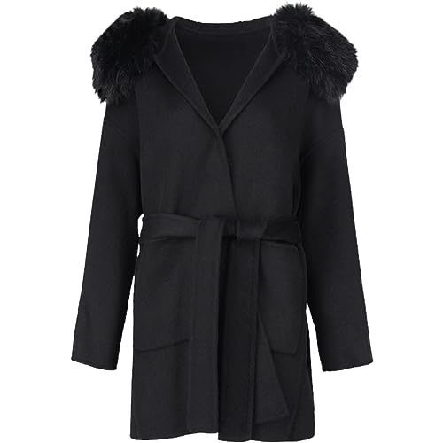 Dam oversize kashmir kappa Leya med XXL-krage av 100 % äkta päls, ullrock, svart, L