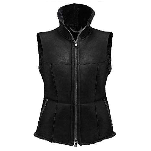 Dam lammskinnsväst från WERNER CHRIST Lammfelle - väst av äkta päls, mångsidig varm pälsväst även lämplig som ridväst, friluftsväst & vinterväst, i brunt & svart, storlek 34,36,38,40,42,44,46,48