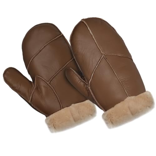 Harssidanzar män vantar för vinter, lammskinn shearling päls fodrad varm äkta läder vantar handske KM054EU, Karamell, L