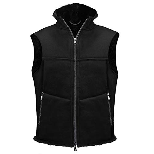 Lammväst herr från WERNER CHRIST Lammfelle - sportig, högkvalitativ pälsväst av äkta päls, även lämplig som ridväst, friluftsväst eller vinterväst, i brunt & svart, storlek 48,50,52,54,56,58