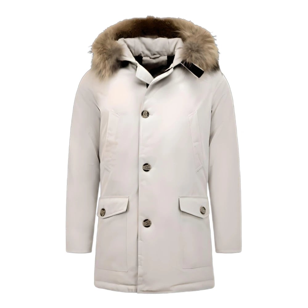 Enos, Jackor , Herr, L, Polyester, Vinterparkas Jackor för Män med Äkta Pälskrage