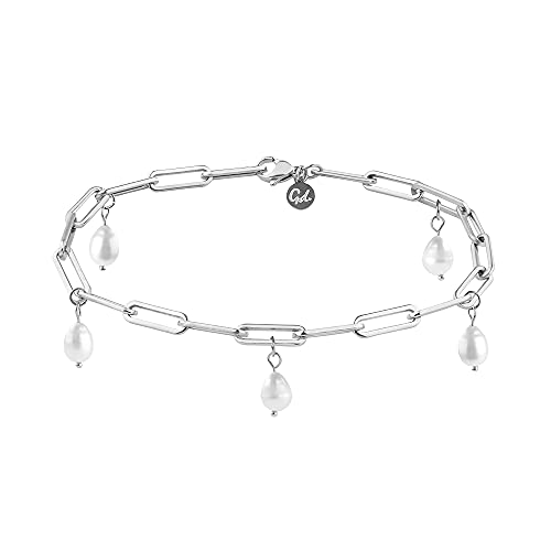 Ankelband i Silver med pärlor - Vattentät - Äkta sötvattenspärlor Ankelband för damer I rostfritt stål länk kedja COLOUR I storlek justerbar
