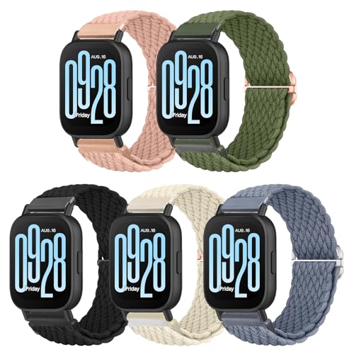 BDIG 5 stycken flätat armband kompatibelt med Xiaomi Redmi Watch 5 aktiv/5 Lite, 22 mm, elastiskt nylontygband för Amazfit Bip 6/för Amazfit Bip 5