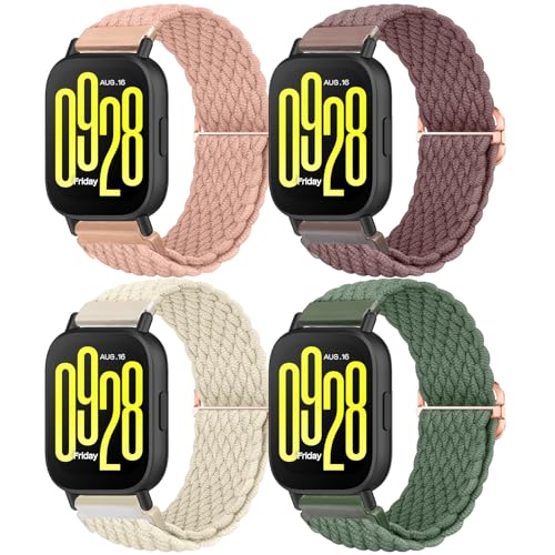 BDIG 4 stycken 22 mm flätat nylonarmband kompatibla med Xiaomi Redmi Watch 5 aktiv/5 Lite kvinnor och män, elastiskt nylontyg armband sport sololoop för Amazfit Bip 5