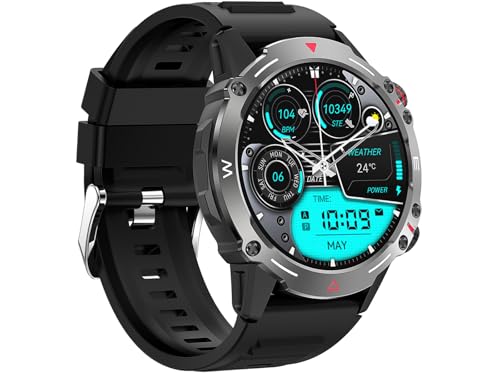 Smartklocka Mäns Smart Watch med Samtal, Vattentät Smart Watch Sport Stegräknare Hjärtfrekvensmätare Blodtrycksmätare Armband Aktivitet 1,39 Cal Digital Klocka för IOS Android (Svart)