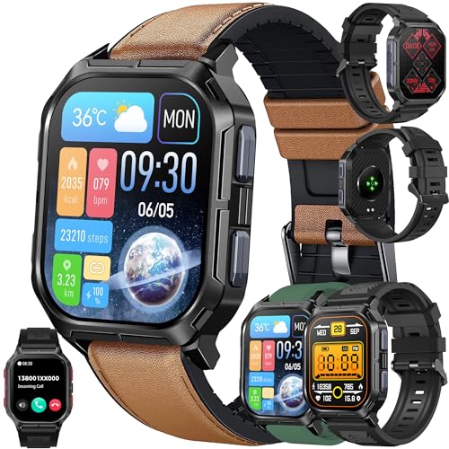 Smartklocka Mäns Smart Watch med Samtal, Vattentät Smart Watch Sport Stegräknare Hjärtfrekvensmätare Blodtrycksmätare Armband Aktivitet 2,02 Cal Digital Klocka för IOS Android (Svart)
