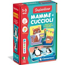 Clementoni Sapientino Baby Mammor och valpar, pedagogiskt spel för barn 1–3 år, Flashcards för att känna igen djur och deras små med roliga och färgglada aktiviteter, italienskt språk, 16860