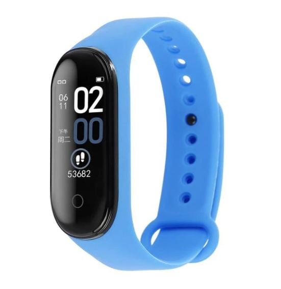 Aktivitetsarmband M4, stegräknare, pulsmätare, blodtryck, vattentät, blå