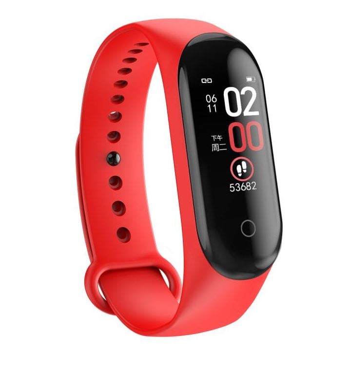 Aktivitetsarmband M4, stegräknare, pulsmätare, blodtryck, vattentät, röd