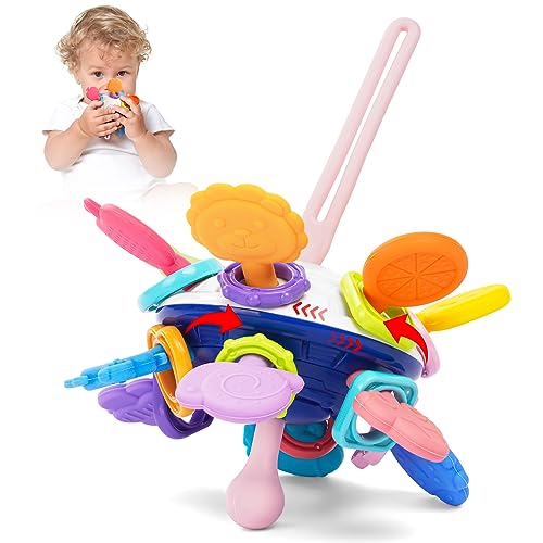 HOTUT tandvården babyer sensorisk leksak, bitring 6-12 månader, aktivitetsboll, Montessori-leksaker för bebisar, BPA-fria skallrande leksaker, utvecklingsleksaker för nyfödda bebisar - Blå