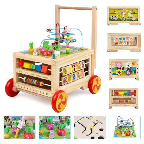 Boppi 5-i-1 stor aktivitetskub i trä 2-vägs pärla labyrint rullunderlägg sensorisk babyleksak med kulram klocka djurformsorterare och skjutreglage multifunktion pedagogisk lekbox 2 år och uppåt