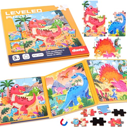 Magnetiskt pussel för barn från 3 till 7 år, 97 bitar magnetiskt pedagogiskt pussel, barnpussel 3, 4, 5, 6, 7 år, aktivitetsleksak bilresegåva för presenter till småbarn 3 till 7 år