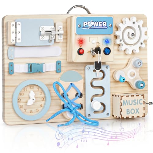 Joyreal Montessori Busy Board från 2 år, Montessori leksak aktivitetstavla med LED-lampor och brytare, motorikleksaker sensoriska leksaker, gåva pojkar och flickor från 2 3 4 år