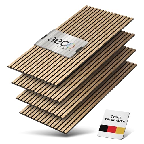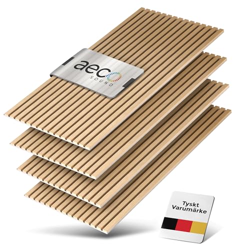 Aeco Sound® - Akustikpaneler Trä | 4 St à 120x60cm | Äkta Träfaner (Ek) & Akustikfilt (Svart) | Set om 4 = 2,88m² | Väggpaneler, Ljuddämpning, Ljudisolering