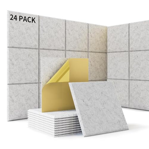 Kvadratiska självhäftande akustikplattor, 24 stycken, ljudisolering med hög densitet, för vägg, tak, trä och dörr – akustikpanel, akustikpaneler, ljudisoleringsplattor, akustikplatta, vit
