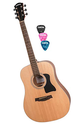 CASCHA Akustisk gitarr, västerländsk gitarr, Dreadnought, stålsträngar, nybörjare och avancerade spelare, inklusive 3 plektrum