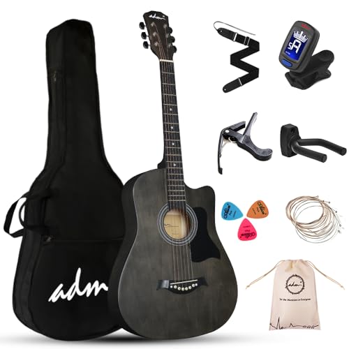 ADM 38 tums akustisk gitarr nybörjare, folkgitarr blå för barn studenter vuxna (stålsträng) svart