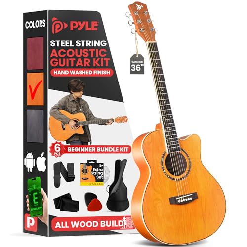 Pyle Pro 36 tum Cutaway akustisk gitarr-3/4 6 stål linden trä matt finish gitarr med spelningsväska, tuner, extra strängar, plektrum, rem, juniorstorlek för nybörjare, vuxna, höger (PGA550CAOR)