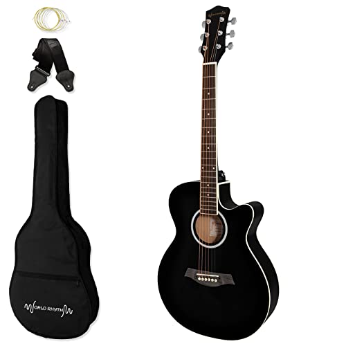 World Rhythm 3/4 akustisk gitarr – liten kropp utskuren gitarr för nybörjare 3/4 Svart