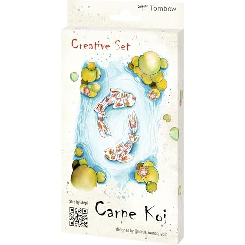 Tombow Kreativt set Carpe Koi, japansk inspirerad pensel Pen set med ABT dubbel pensel penna, fineliner, A6 vattenrulle papper för Koi-teckning och akvarell [JAPAN-SET4]